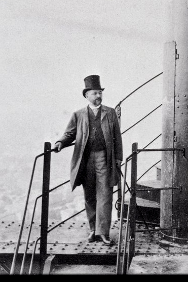 Gustave Eiffel dans l'escalier de la Tour Eiffel